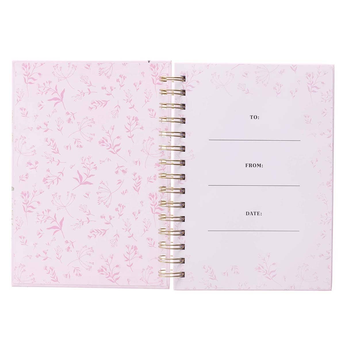 Pink rose design, Gold foil accents, New Strength Collection, Hardcover, Wirebound, Full-color cover, 192 lined pages with Scripture, Size: 8.4” x 6.4” x 1” (213 x 163 x 25 mm)